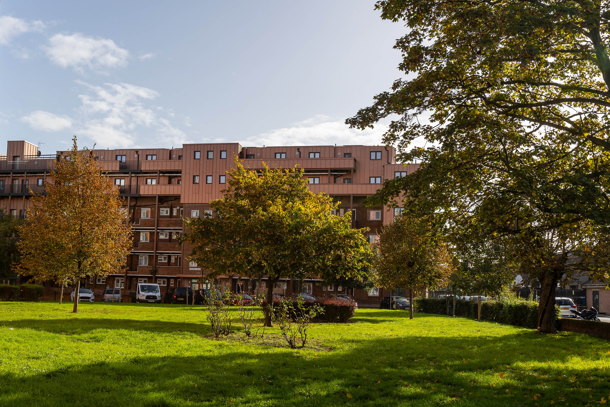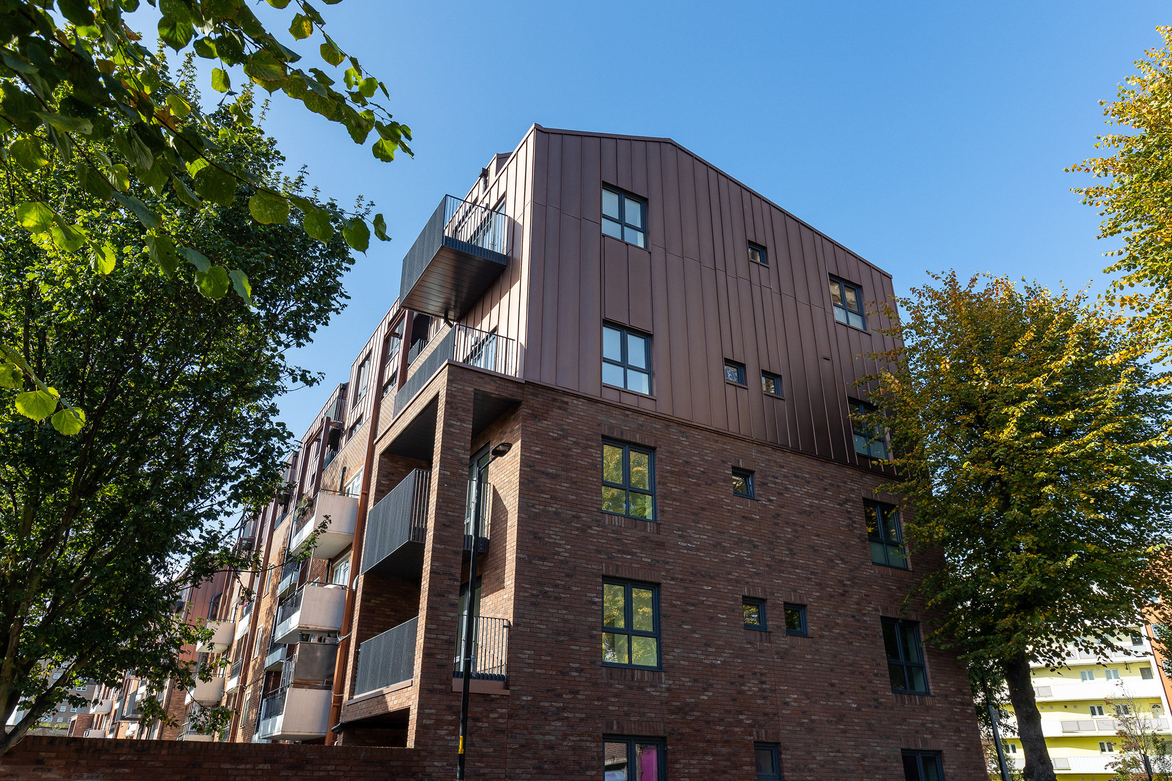 This enhanced scheme, on two existing 1950s residential blocks, created 30 new additional affordable homes by leveraging the airspace while existing residents remained in their homes.