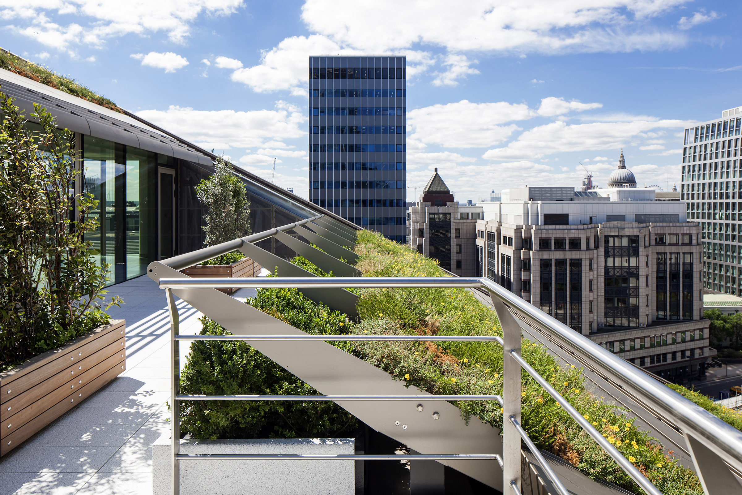The architectural clarity of this response is matched by its technical performance. Moorgate Exchange is designed as a high-performing and enduring workplace. The project achieved both BREEAM “Excellent” and LEED Platinum certification—reflecting an integrated approach to sustainability that runs through its structure, systems, and spatial strategies.